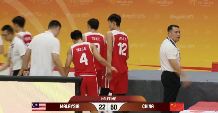 没啥压力!中国男篮U16半场50-22领先马来西亚!两节均得到25分